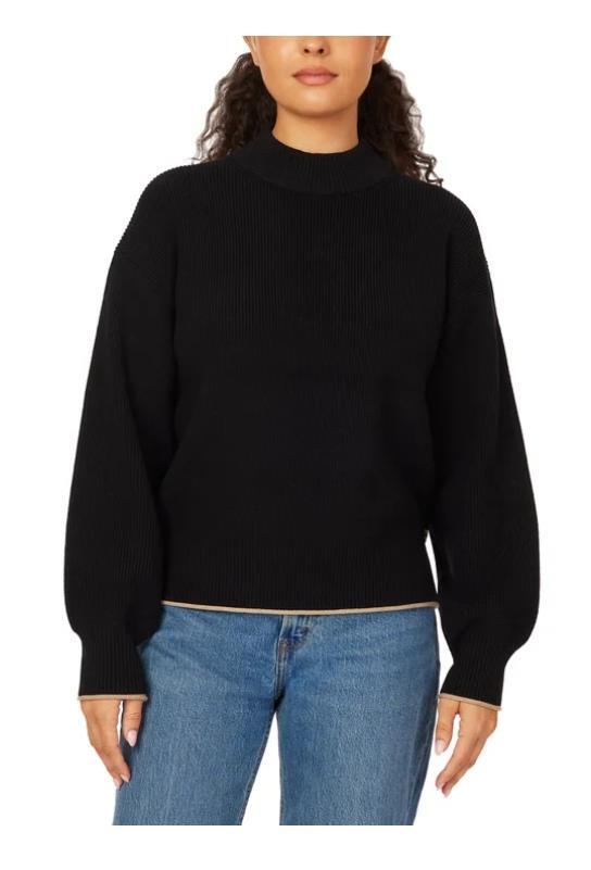 Scotch Soda Womens Sweater Black Camel Mock Neck Relaxed Fit Long Sleeves