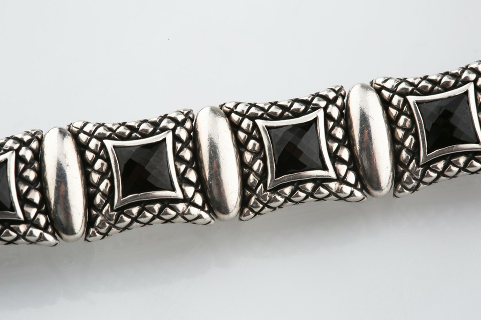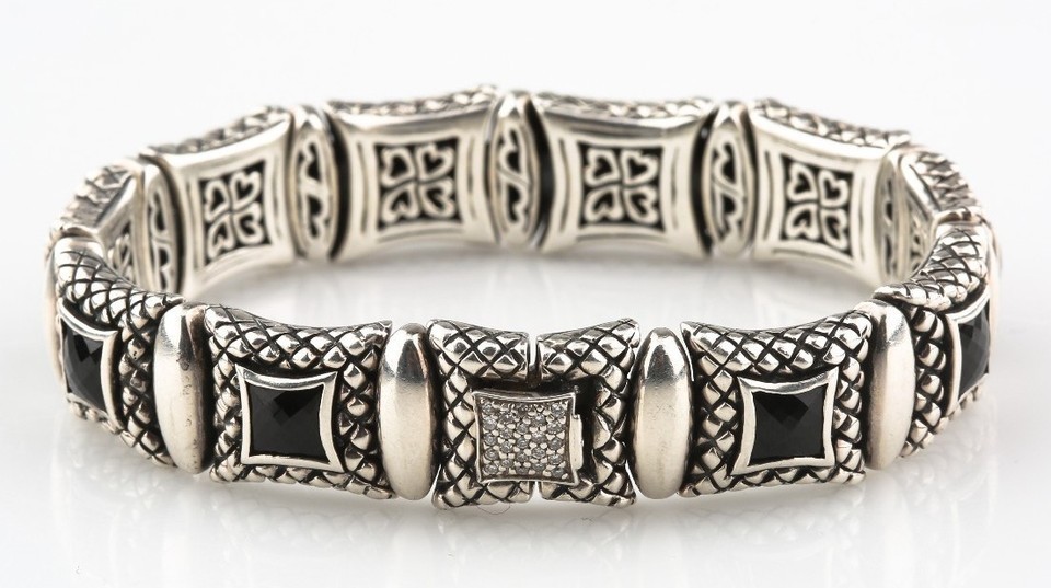 - Scott Kay 925 Silver Ladies Equestrian Bracelet w/ Faceted Onyx & Diamond Clasp