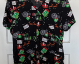 Scrubstar Festive Black Scrub Top with Holiday Prints Size L