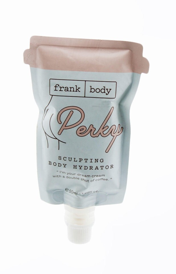 Feeling flat? Perky will perk you up. frank body's Perky Sculpting Body Hydrator is a sculpting moisturizer for smooth and hydrated skin. Packed with caffeine to firm, acai to give you a boost, shea butter to hydrate, and longan seed extract to sculpt. Comes in a squeezy pouch for easy access. Vanilla scent.