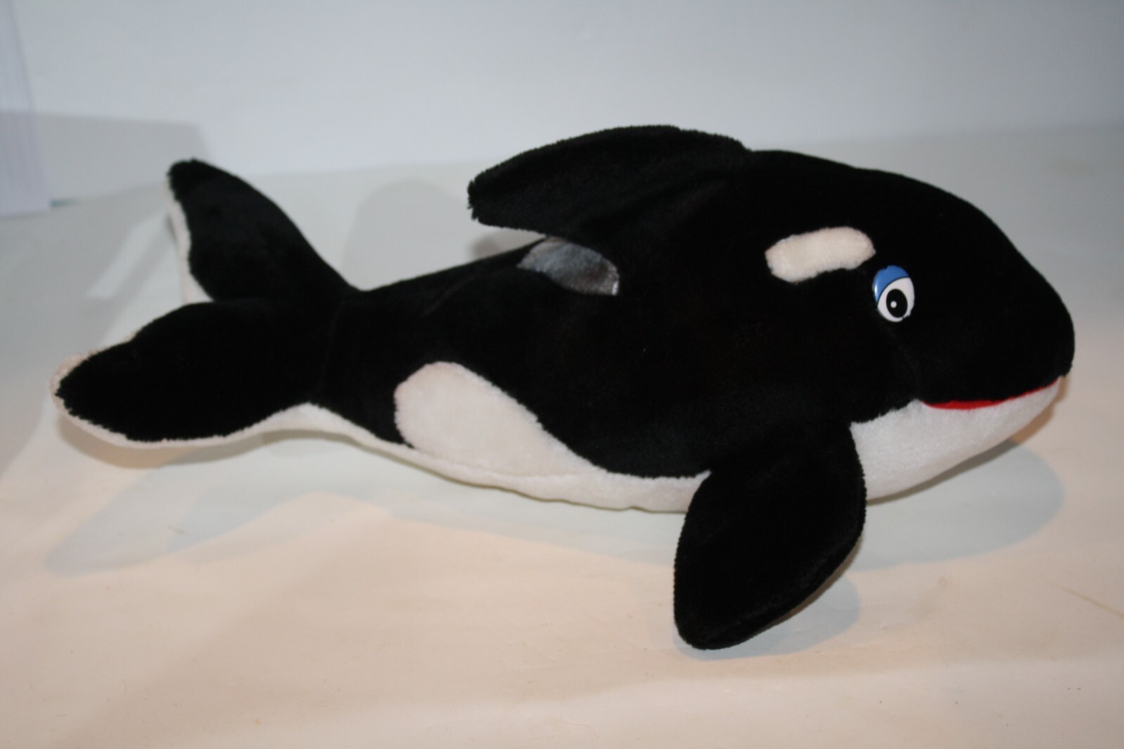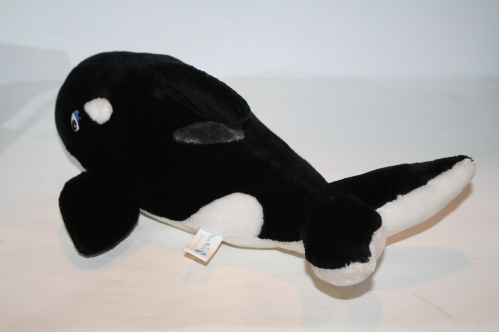 - Sea World 15" Shamu Orca Killer Whale Plush Stuffed Animal Black White Blue Eyes