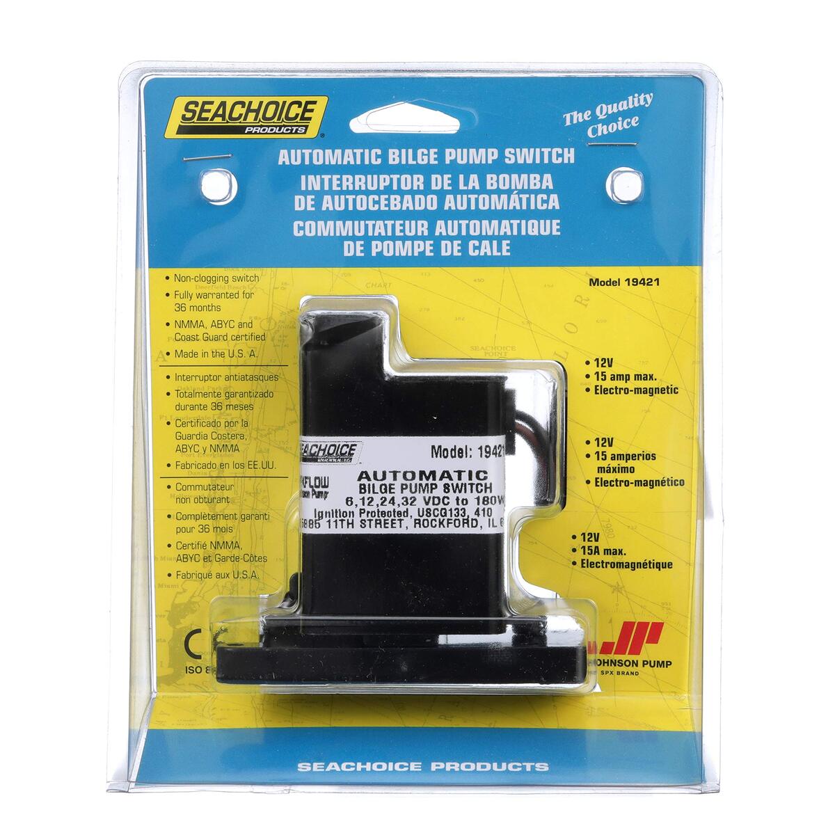 - Seachoice Automatic Electro-Magnetic Bilge Pump Switch, 15 Amps Max, 12V DC
