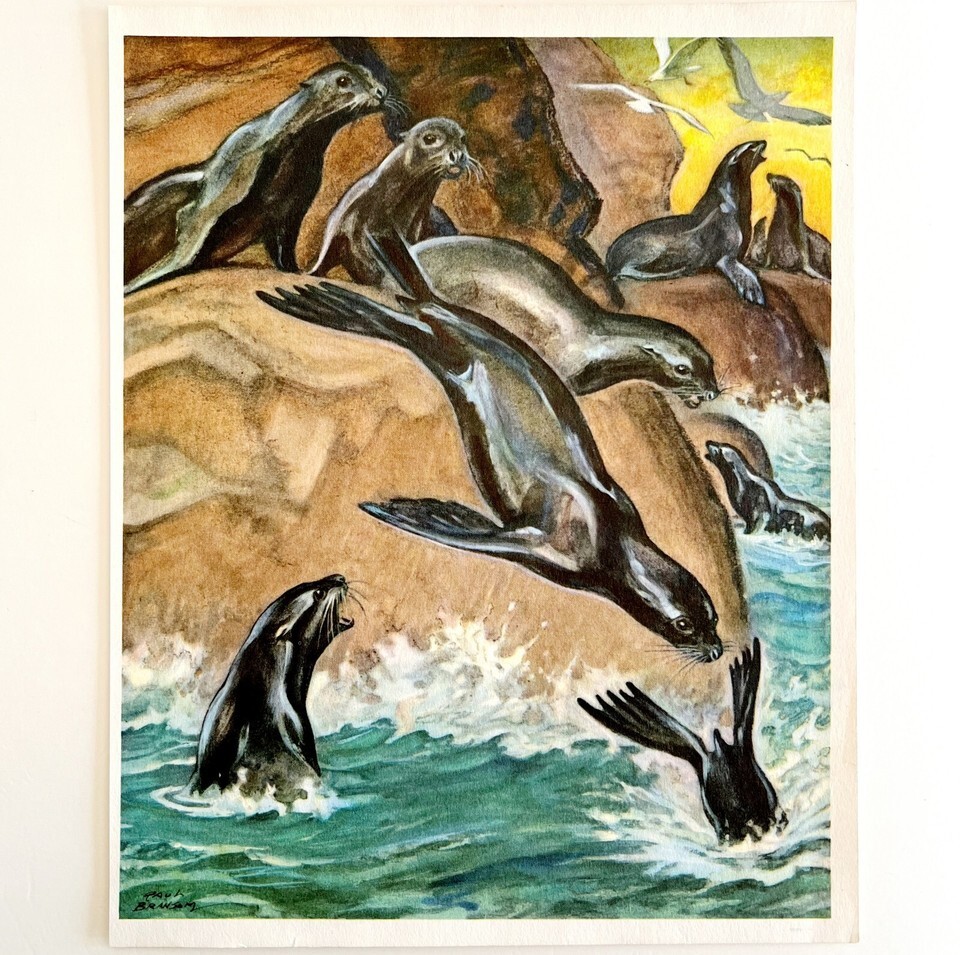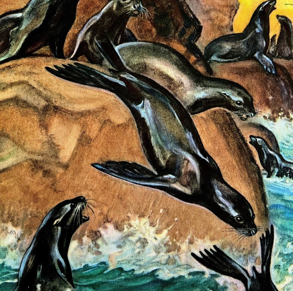 Seals Ocean Shore 1954 Art Print Paul Bransom Marlin Perkins Zooparade DWDD3