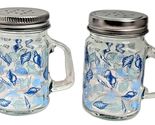 - Seashells Glass Salt Pepper Shakers Stainless-Steel Lid Handle 3.5-in Blue NEW