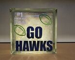 Beautiful Homemade Seattle Seahawks Heavy Glass Block Shelf Light with white Christmas Lights Inside - Battery Operated - Approximately 7.5" X 7.5" X 3? SMOKE FREE HOME! SUPER FAST SHIPPING!