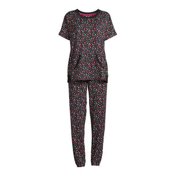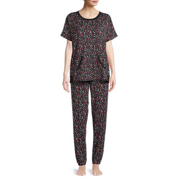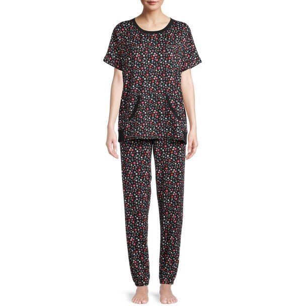 Give the gift of comfort and style this Mother?s Day with this charming 3-piece giftable PJ set from Secret Treasures! This versatile set features a short sleeve dolman style top with a kangaroo pocket that is adorned by self-fabric details. The pull-on elastic waistband jogger is in matching prints with a coordinating makeup bag to carry all your essentials. The set is made from a polyester blend and super brushed jersey for a wonderfully soft feel.