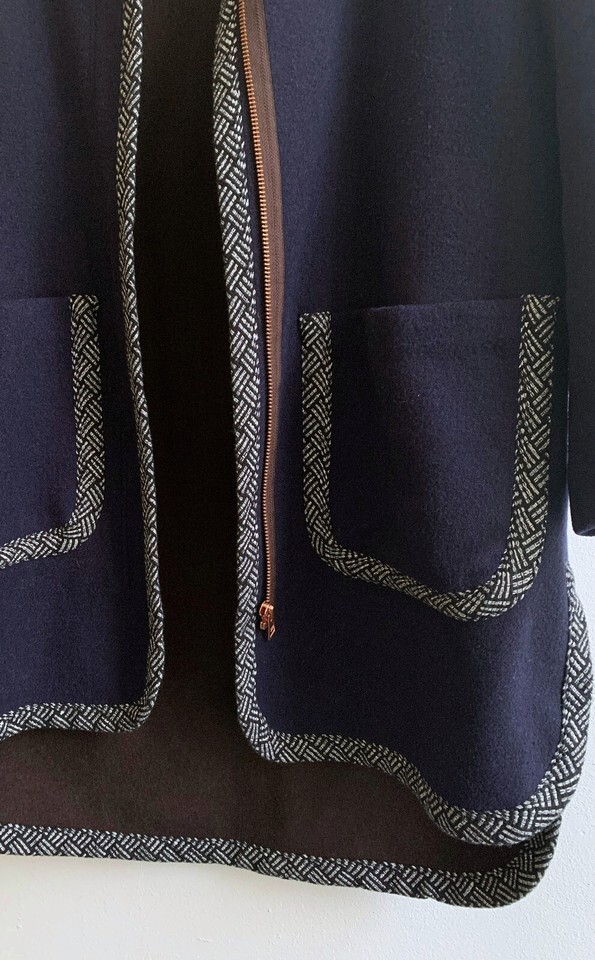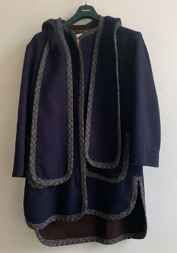 Beautiful and cozy pre-owned See by Chloe wool double-face coat with patterned trim.