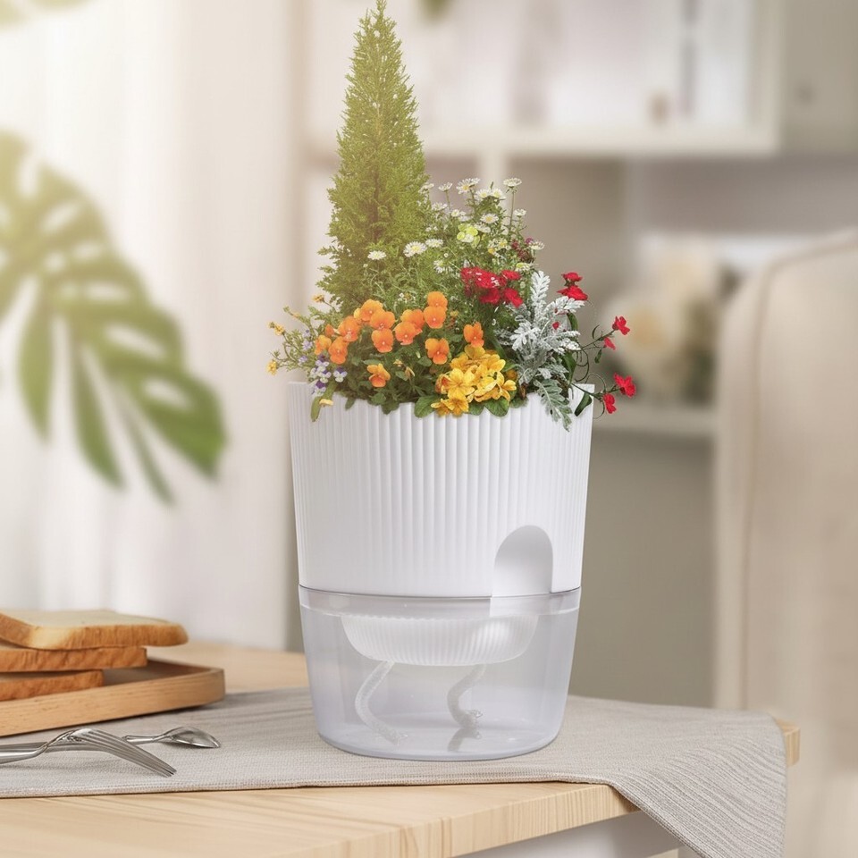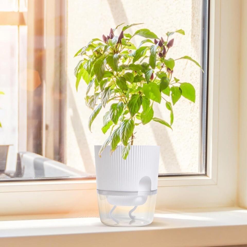Self Watering Planter Pot for Indoor Plants, 5.5'' with Wick Rope and Reservoir, White ? ? ? ? ? ? ? ? ? ? ? ? ? ? ? ? ? ? Self Watering Planter Pot for Indoor Plants Color: White Size: 5.5 inches Features: Efficient Watering: Utilizes a cotton wick to draw water from the bottom reservoir, granting your plants consistent hydration for up to a week or more. Spacious Reservoir: Holds 34 oz of water, allowing longer intervals between refills and promoting healthy plant growth. Dual-Layer Structure: Innovative two-layer design separates soil from the water base, storing excess water below and delivering nutrients directly to roots through the cotton rope. Airflow Design: Bottom ventilation holes enhance air flow through the soil, reducing the risk of root decay while supporting stronger root development. Durable Build: Crafted from sturdy, odorless plastic, these lightweight pots are resilient and suitable for both indoor and outdoor use. Benefits: Ensures your plants receive optimal hydration without the risk of overwatering. Reduces the frequency of watering, offering convenience for busy lifestyles. Encourages healthier and more robust plant growth. Combines modern design with functionality for a beautiful addition to your home. Easy to use, making it perfect for both novice and expert plant enthusiasts. Why choose our Self Watering Planter Pot? Elevate your indoor gardening experience with the Self Watering Planter Pot. Designed for convenience and efficiency, this pot ensures your plants thrive in a consistent environment without the hassle of frequent watering. Its spacious reservoir keeps hydration flowing steadily, while the dual-layer structure and airflow design promote optimal growth conditions. Made from durable, lightweight materials, this planter is not only functional but also an elegant addition to your decor. Transform your plant care routine - order your Self Watering Planter Pot today and watch your indoor garden flourish! Shipping Free Fast Shipping - We offer free shipping to most of the USA with a normal delivery time of 3-7 days. However, due to the current situation, additional delivery time (up to 3 weeks) may be required for some items. Alternative Carriers - We may use alternative carriers (e.g. USPS, FedEx, UPS, etc.) to ensure your package arrives safely and on time. Due to the use of multiple carriers, we are unable to provide a tracking number automatically. Handling Time - Orders are processed and shipped within 1-2 business days of receiving cleared payment. Shipping Restrictions - Shipping to Alaska, Hawaii, Puerto Rico, Guam, and other US territories may incur shipping charges or delivery restrictions. Please contact us before ordering, or your order can be refunded/cancelled. State Restrictions - There may be restrictions based on your state of purchase. For example, certain items may not be shipped to California due to state regulations. Contact for Tracking Updates - If you require tracking updates or have any concerns about the delivery of your order, please feel free to contact us, and we will be happy to assist you. Return 30-Day Hassle-Free Returns - We want you to be completely satisfied with your purchase. If you are not, you can return the item within 30 days of receiving it for a full refund or exchange. Easy Return Process - To start a return, simply contact us and we will provide you with a prepaid return shipping label and detailed instructions. Restocking Fee - There are no restocking fees for returns. However, the buyer is responsible for return shipping costs if the return is not due to a seller's error. Refund Processing Time - Refunds will be processed within 5 business days of receiving the returned item in its condition. Payment We accept all major credit cards, PayPal, and Apple Pay for your convenience. Your payment information is secure and encrypted to ensure a safe and seamless transaction. Please complete your payment within 3 days of purchase to avoid any delays in shipping. Feedback Your feedback is extremely important to us. We strive to provide the best products and customer service possible. If you are satisfied with your purchase, please take a moment to leave us a positive review. If you have any concerns or issues with your order, please contact us before leaving negative feedback. We are committed to resolving any problems and ensuring your satisfaction. Contact Us If you have any questions or concerns, please feel free to out to our customer support team. You can contact us through the messaging system. We are available Monday to Friday, 9:00 am to 5:00 pm EST, and we will do our best to respond to your inquiry within 24 hours. Buy it now and enjoy a pleasant shopping experience! UPC: 7445018859876 Plant or Animal Product Type: Flower Pattern: Floral Number of Pieces: 1 Included Components: wick Item model number: KF2273 Planter Form: Plant Pot Materials sourced from: plastic Product Dimensions: 5"D x 5"W x 4.8"H Mounting Type: Tabletop Number of Levels: 1 Cartoon Character: Plants Indoor/Outdoor Usage: Indoor Manufacturer: KvyusFlourish Style: garden Theme: Floral Finish Type: white Special Feature: self watering Type: Pot Set Includes: Pot Compatible Plant Type: African Violet Size: 5.5 inch Material: Plastic Features: Self-Watering,Rot Resistant,Portable,Frost Resistant,Lightweight,Rust Resistant Capacity: 34 oz Color: White Shape: Round Number of Items in Set: 1 Item Weight: 2.1 pounds
