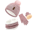 - Senker Pink Winter Beanie Gloves Neck Warmer Set Women’s Soft Knit Cozy Gift Set