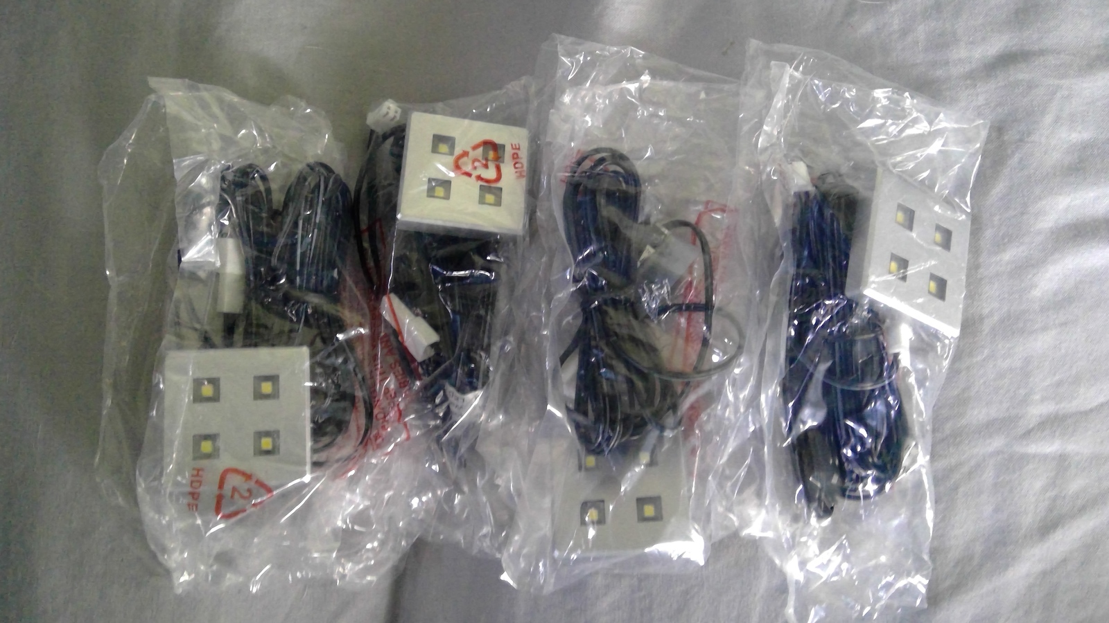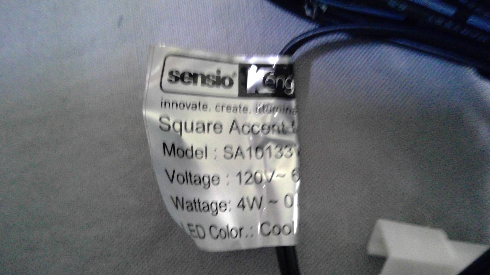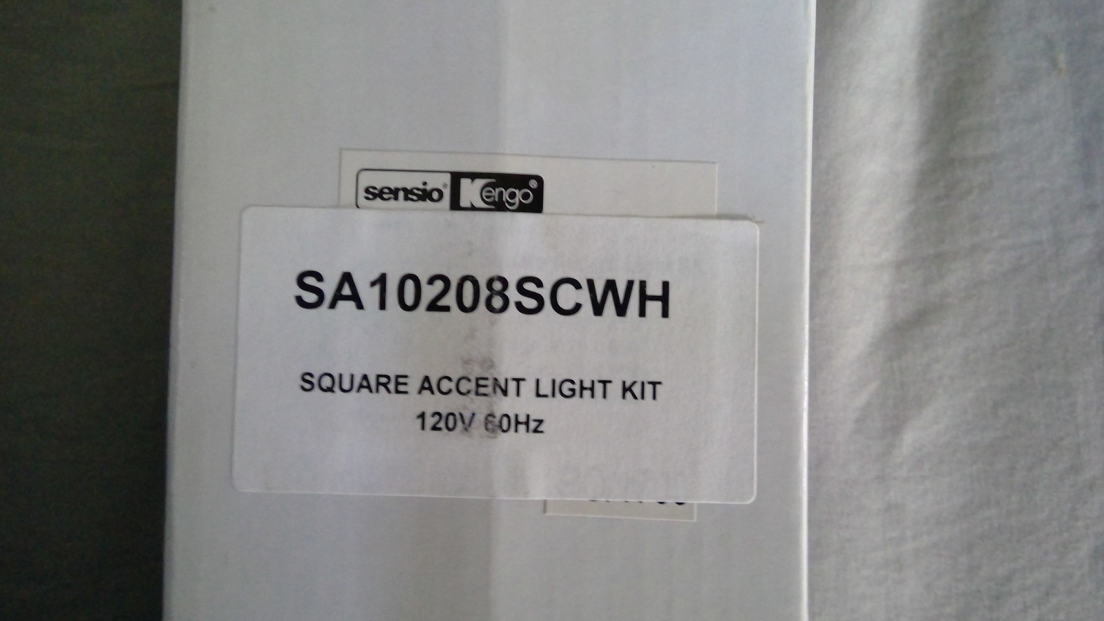 Sensio Kengo SA10208SCWH Square Accent Light Kit 120V 60Hz Energy Saving LED Range 4x LED square accent lights 1x LED transformer 1x Instructions Please Review Pictures Questions: M M Electrical Surplus (315) 781 8687 location upstairs C75A