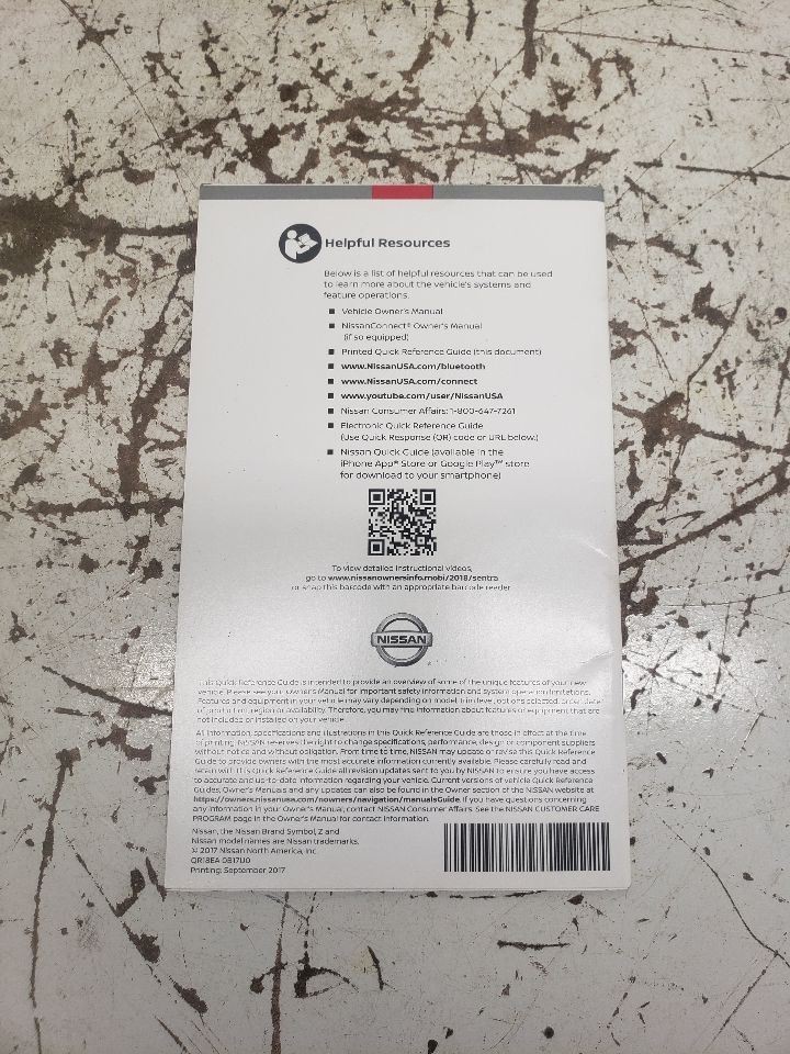 - SENTRA 2018 Owners Manual 1368070*~*~* SAME DAY SHIPPING *~*~*