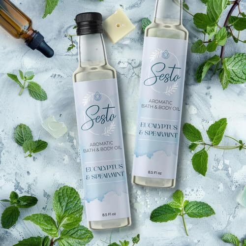 - Sesto Aromatic Bath & Massage Oil - Eucalyptus & Spearmint - 8.5oz, with Label