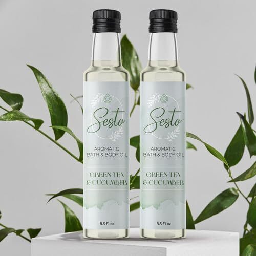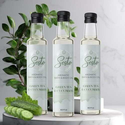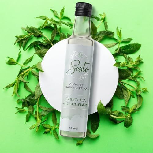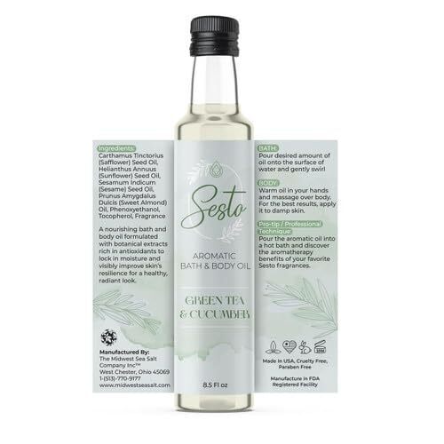 - Sesto Aromatic Bath & Massage Oil - Green Tea & Cucumber - 8.5oz, with Label