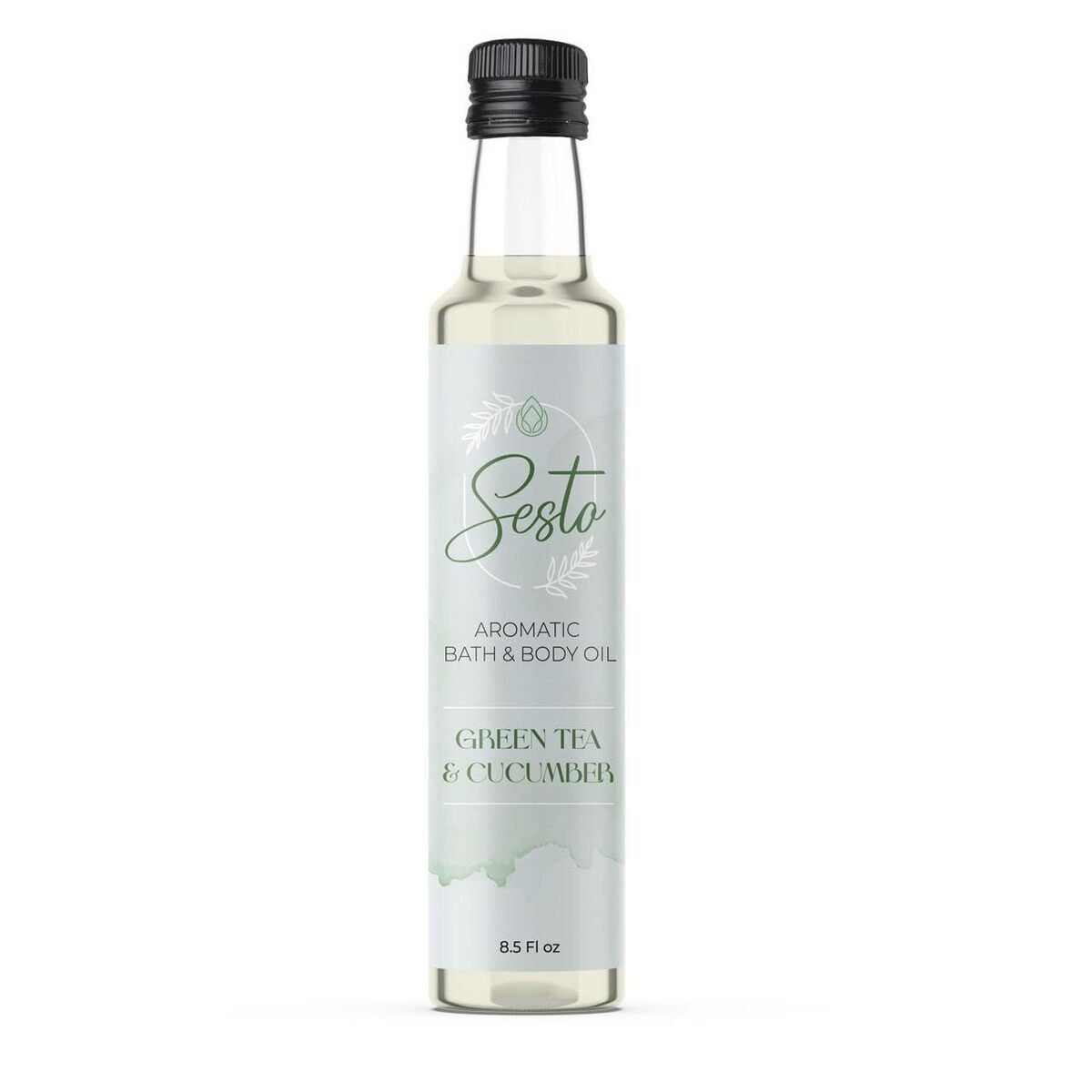 Sesto Aromatic Bath & Massage Oil - Green Tea & Cucumber - 8.5oz, with Label