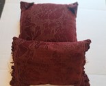- Set 2 Burgundy Tapestry Floral Borgata Throw Pillows Fringe Velvet Square READ