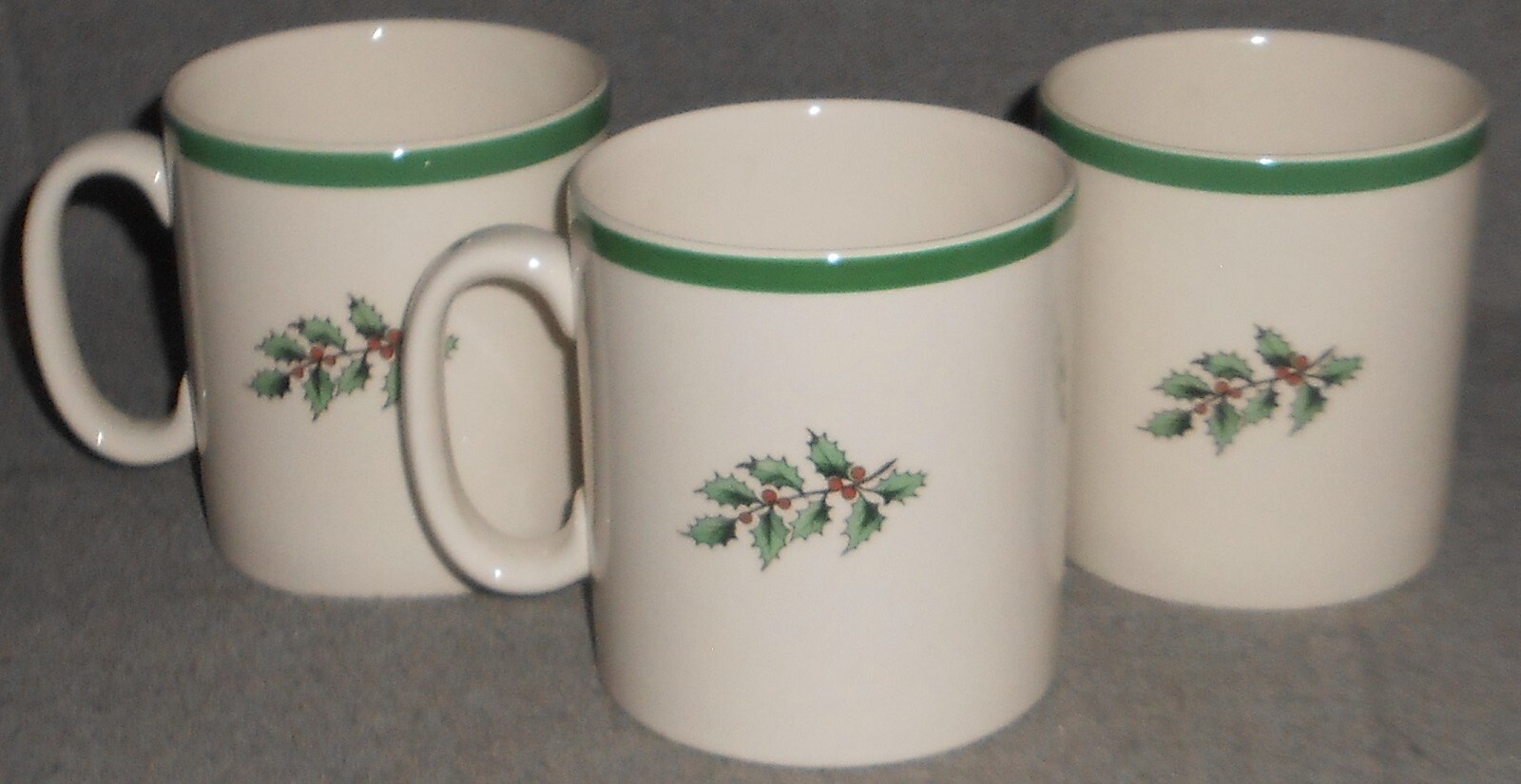 This is a Set of (3) 3 1/4" 9 oz Handled Mugs from Spode in the Christmas Tree Pattern with the Green Trim. All three in good pre-owned condition with no chips or cracks. sale TERMS AND CONDITIONS: Please email me with any questions. I am occasionally out of town for 2-3 days at a time but I will attempt to answer any questions immediately or upon my return. Payment is expected within three working days from purchase date unless other arrangements have been made. I ship via USPS Priority Mail (2-3 working days delivery) or FedEx Home Delivery (5-7 working days delivery) depending on which method you select at checkout. Purchases may be subject to applicable State Sales Tax if you live in a State that collects sales tax from out of State purchases. THANKS FOR LOOKING! BX#59-UD