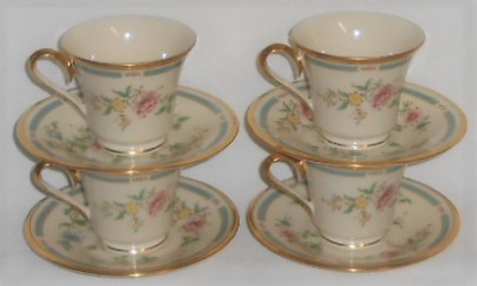 Set (4) Lenox MORNING BLOSSOM PATTERN Cups and Saucers MADE IN USA