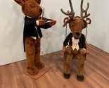 I am selling a vintage animated mechanical Christmas store display set of 2 reindeer made by David Hamberger Displays. They are from the Van Deer Christmas Party scene. Based on the gray and black plugs, we believe they were made in the late 1980?s or later. The violin player moves his arm with bow, the seated deer move his head up and down. Motors sound normal and are currently working as shown. The motor or figure do not come with any guarantees since it?s vintage.