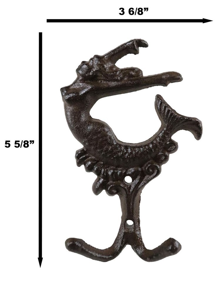 - Set Of 2 Cast Iron Mermaid Ariel Above The Waves Rustic Double Wall Coat Hooks