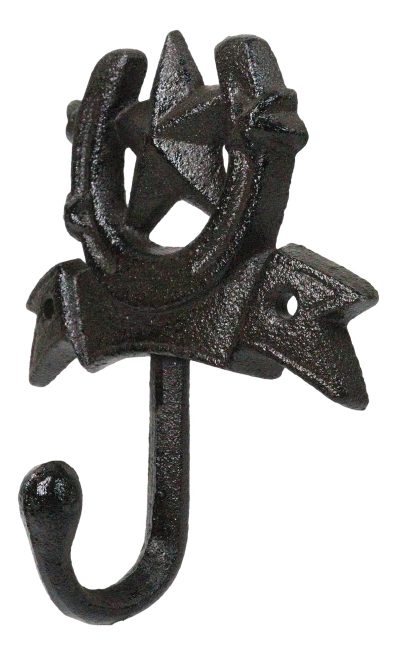 ? Bring a touch of the Wild West to your home with this Cast Iron Lone Star Wall Hook featuring a lucky horseshoe design. Perfect for hanging coats, hats, keys, or leashes, this sturdy wall hook combines functionality with western charm. Its durable cast iron construction and rustic finish make it an ideal accent for cabins, barns, or cowboy-themed decor. Easy to mount and built to last, it's a practical yet stylish way to keep your space organized.
