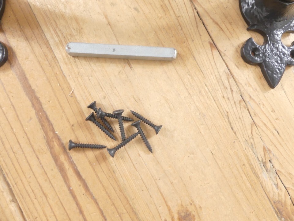 1 PAIR (2 HANDLES) OF BLACK DOOR HANDLES! NO INNER MECHANISMS TO LOCK INCLUDED IN THE SALE! THIS IS FOR THE HANDLES AND PARTS SHOWN ONLY! HANDLES MEASURE 6 1/4" FROM TOP TO BOTTOM, AND 2" WIDE ON THE PLATE, AND THE HANDLE EXTEND 4 3/4" OUT!! BLACK VINTAGE LOOK! HANDLES DO TURN UP AND DOWN! SHIPPED OUT WITHIN ONE DAY, SO YOU CAN GET FAST! FREE SHIPPING!