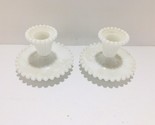 - SET OF 2- VINTAGE 70's HOBNAIL MILK WHITE GLASS CANDLE STICK HOLDERS UNIQUE PAIR