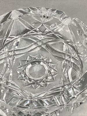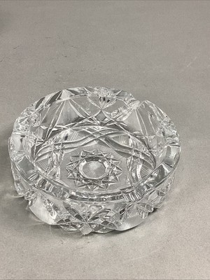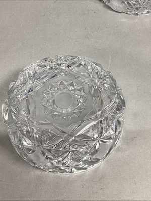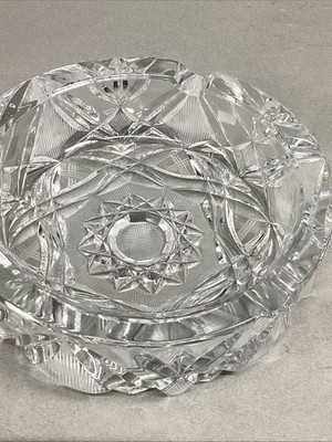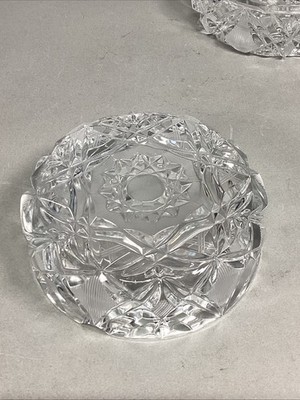 - Set Of 2 Vintage Large Heavy Cut Glass Crystal Ashtrays - 6”D
