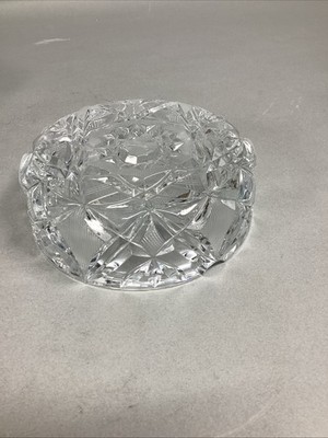 Set Of 2 Vintage Large Heavy Cut Glass Crystal Ashtrays - 6?Dx2?H. In good but used condition.