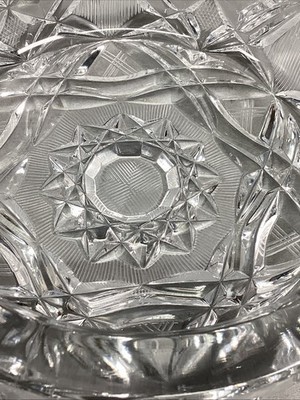 Set Of 2 Vintage Large Heavy Cut Glass Crystal Ashtrays - 6”D
