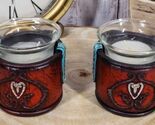 - Set Of 2 Western Cowgirl Love Heart Scrollwork Faux Leather Votive Candle Holder