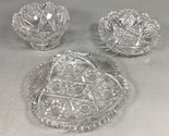 - Set Of 3 Cut Glass Crystal Candy Dish And Trinket Dish W/ Sawtooth Edges