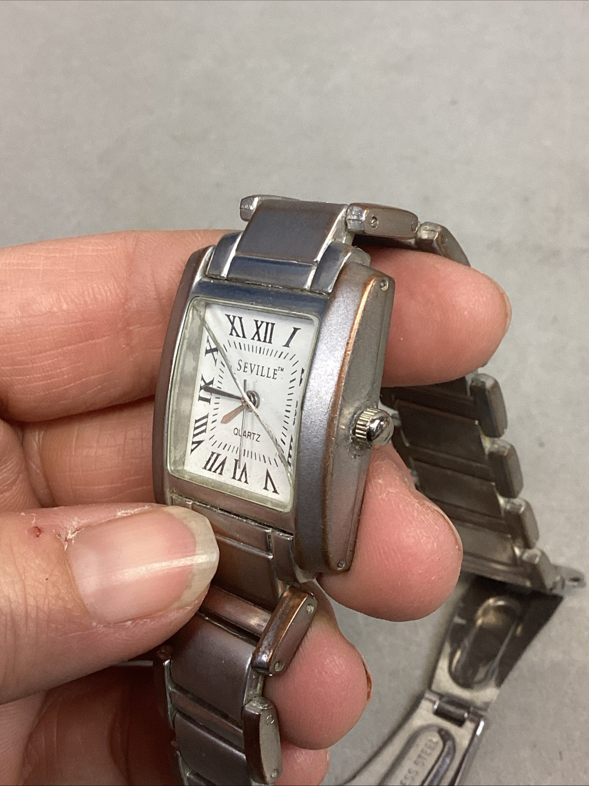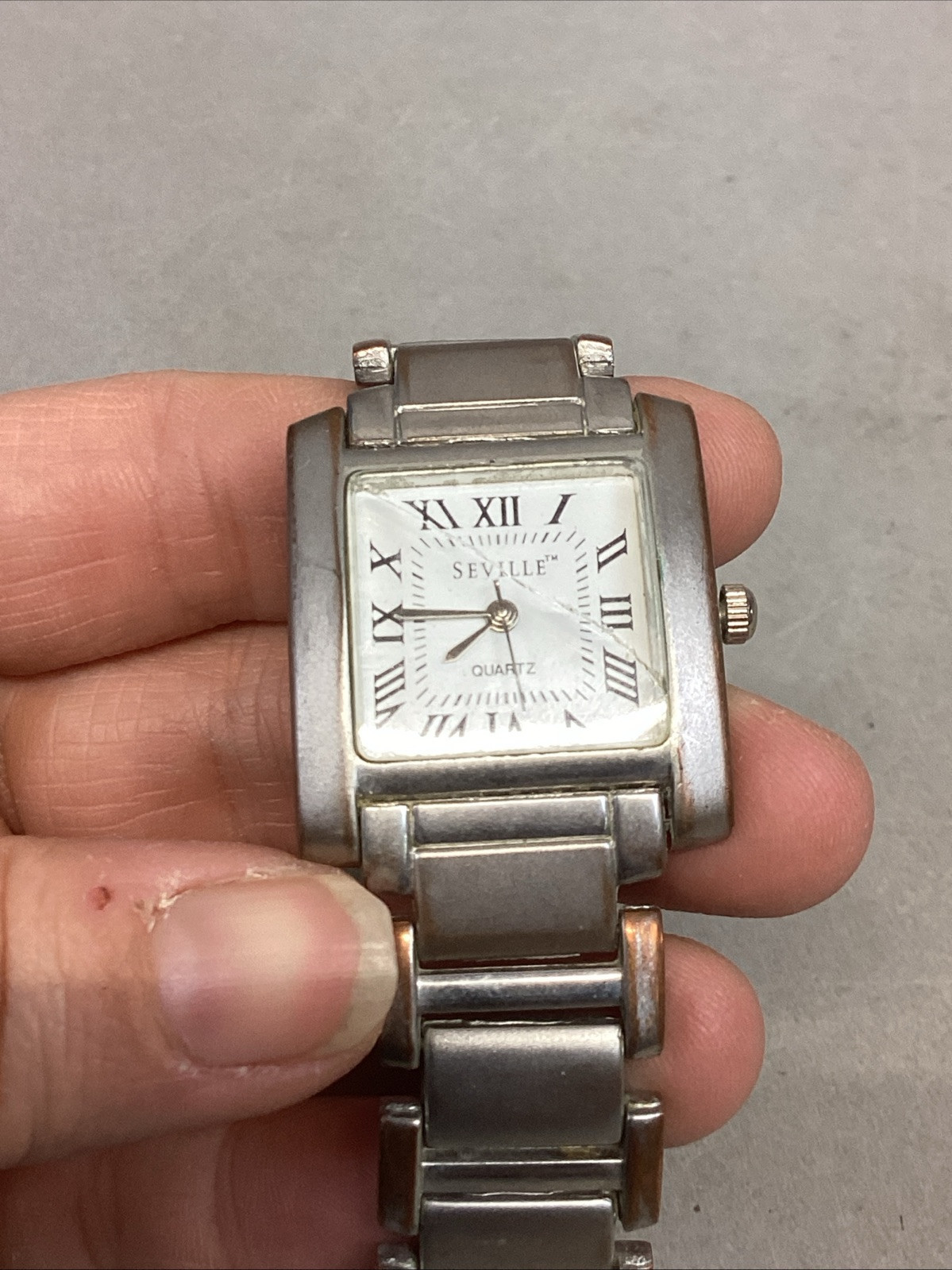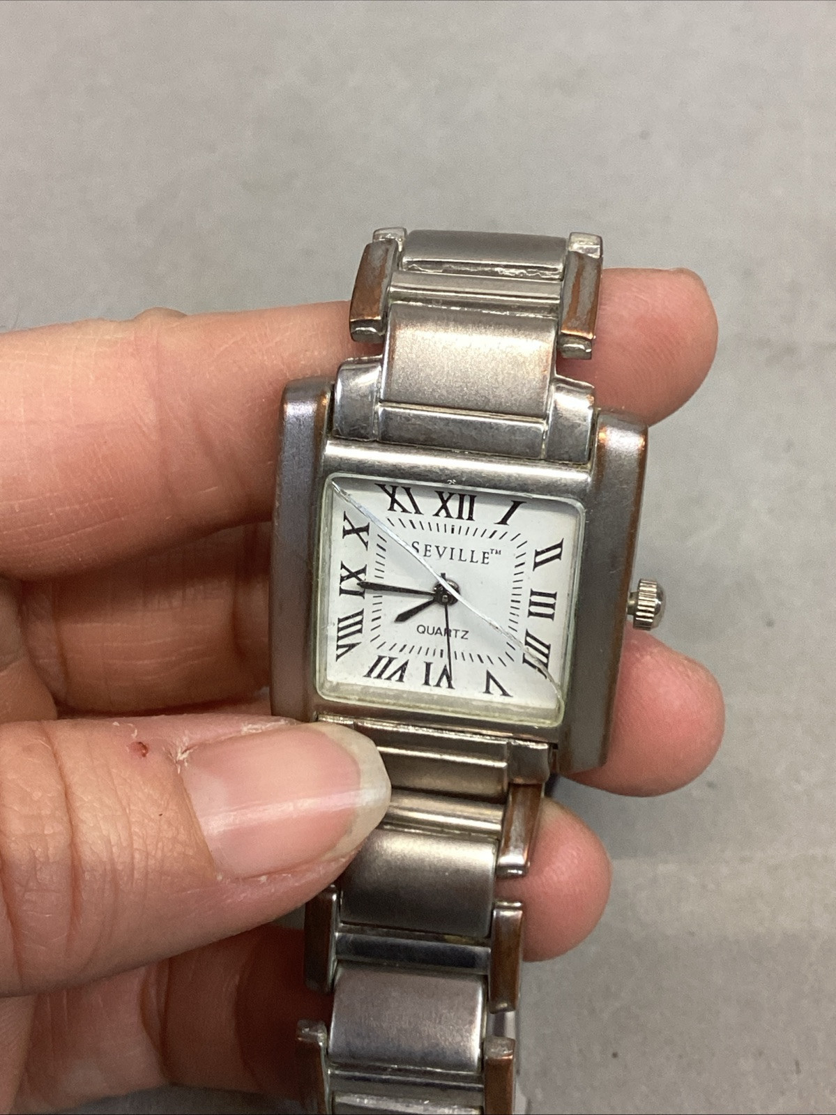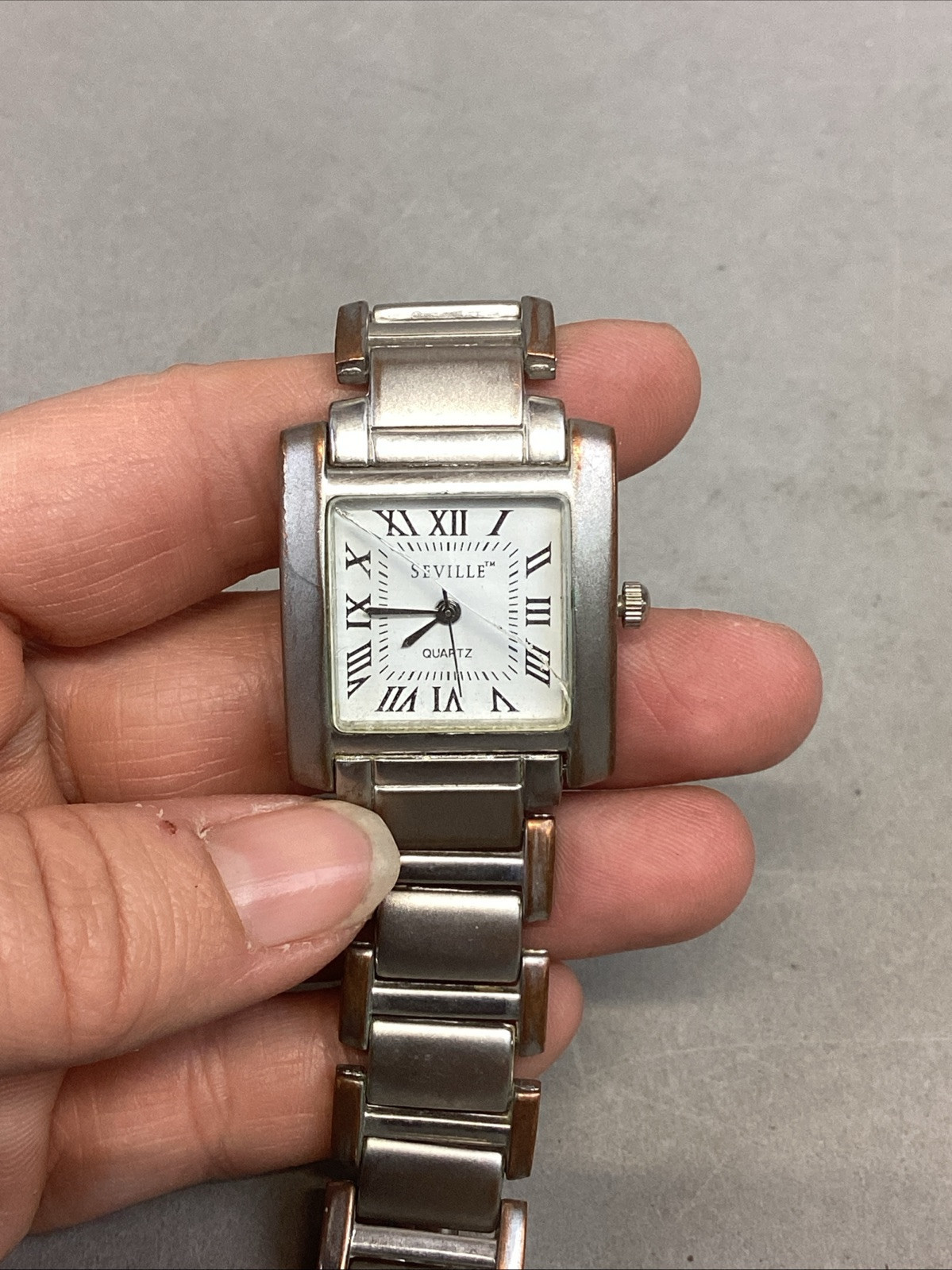 2. Seville Roman Numeral watch. Front face glass is cracked. Untested.