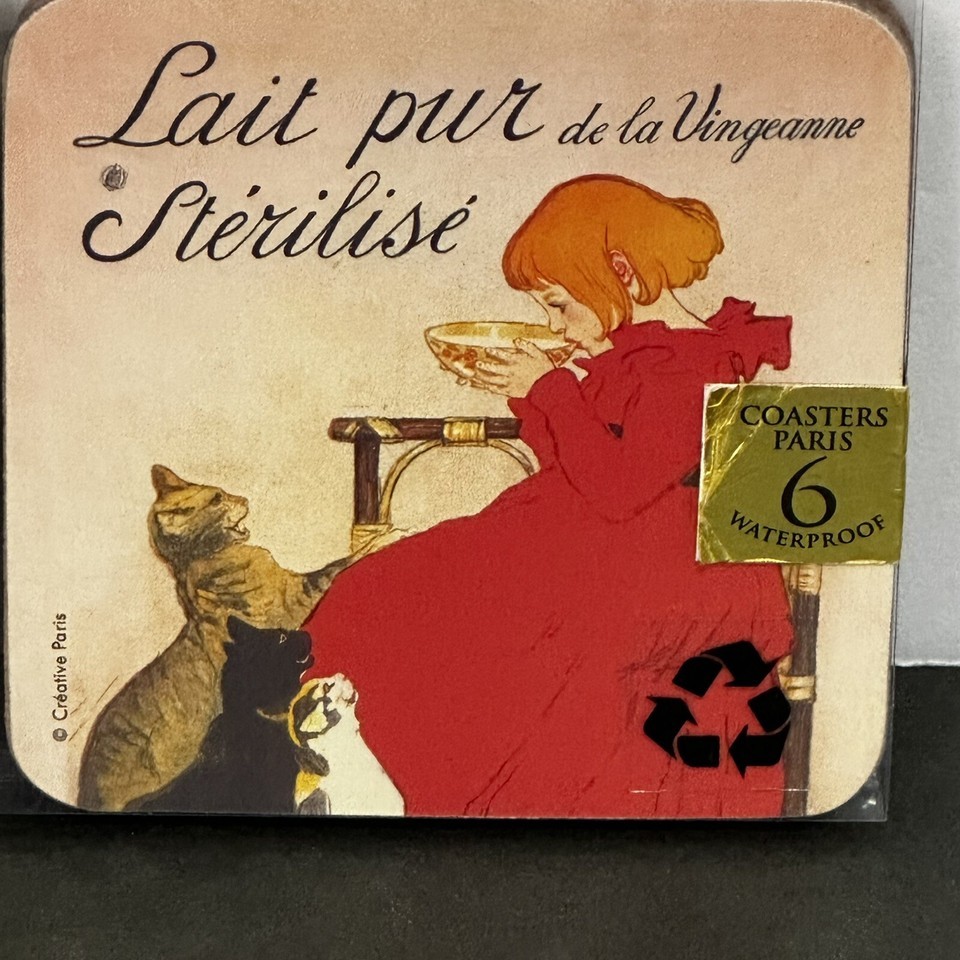 Set Of 6 French Vintage Art Cat Posters (Dessous de Verre) Waterproof Coasters