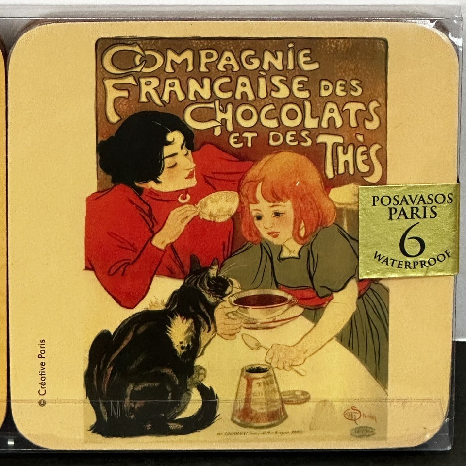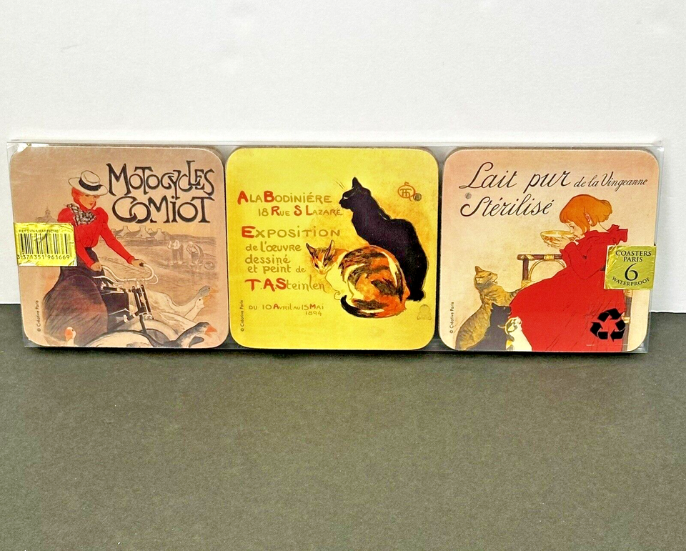 Set Of 6 French Vintage Art Posters (Dessous de Verre) Waterproof Coasters - New