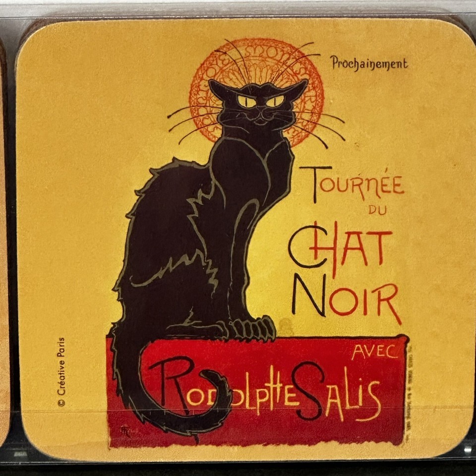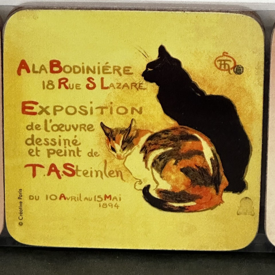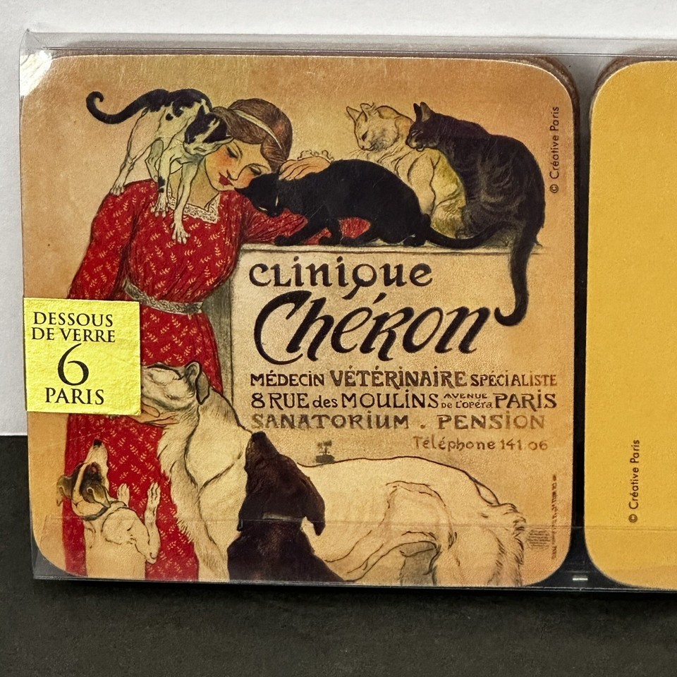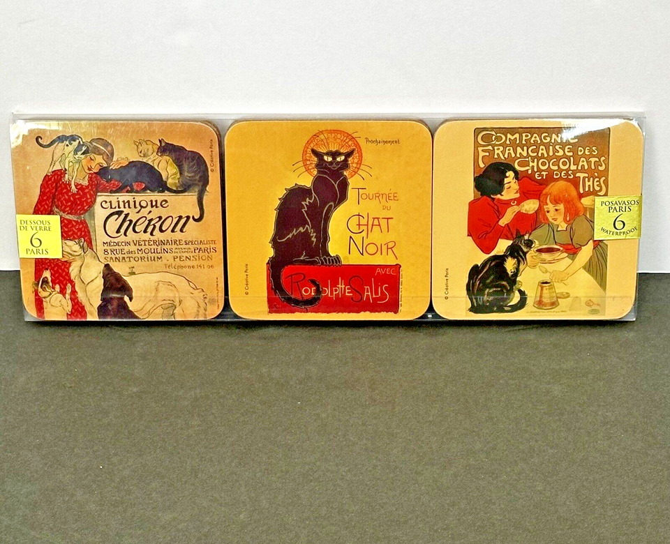 - Set Of 6 French Vintage Art Cat Posters (Dessous de Verre) Waterproof Coasters