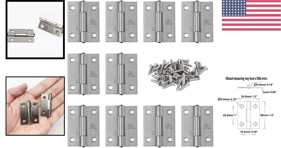 - Set of 10 Stainless Steel 1.5-Inch Folding Butt Hinges for DIY Craft Projects