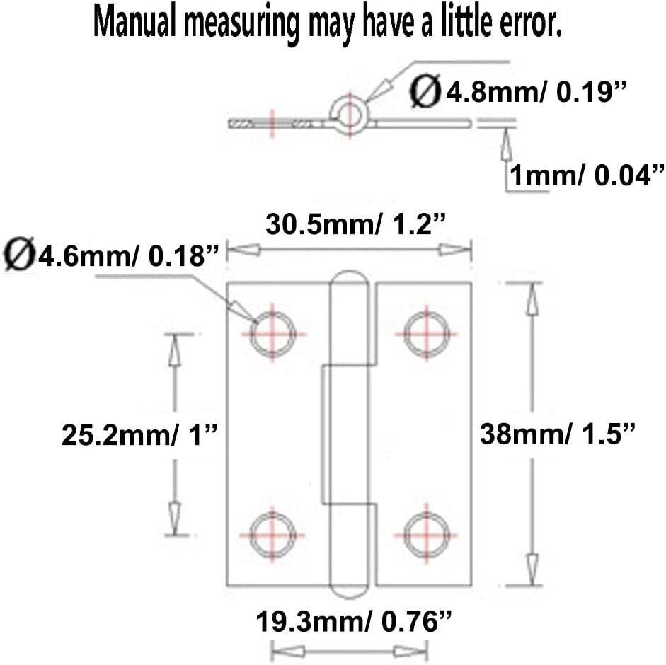 Set of 10 Stainless Steel 1.5-Inch Folding Butt Hinges for DIY Craft Projects