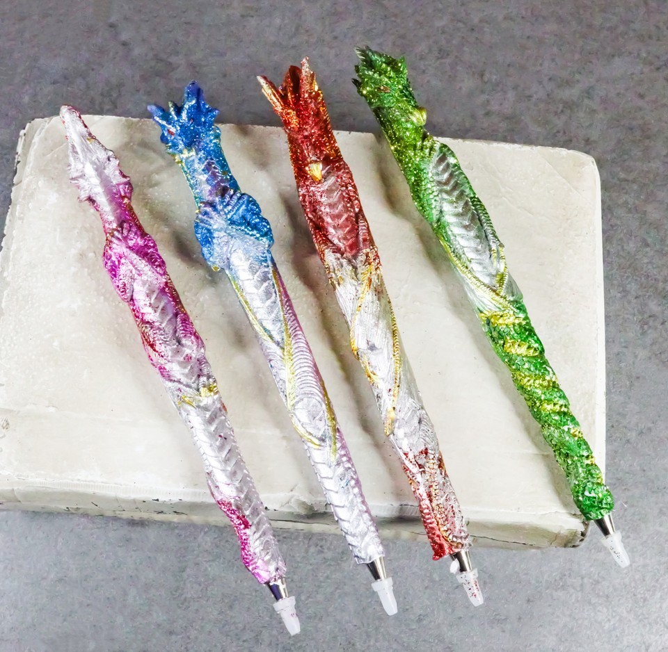 ? These Sculptural Dragon Ballpoint Pens are made of high quality designer resin, individually handpainted and polished. Because each piece is partially hand crafted, color tone may vary from pictures.