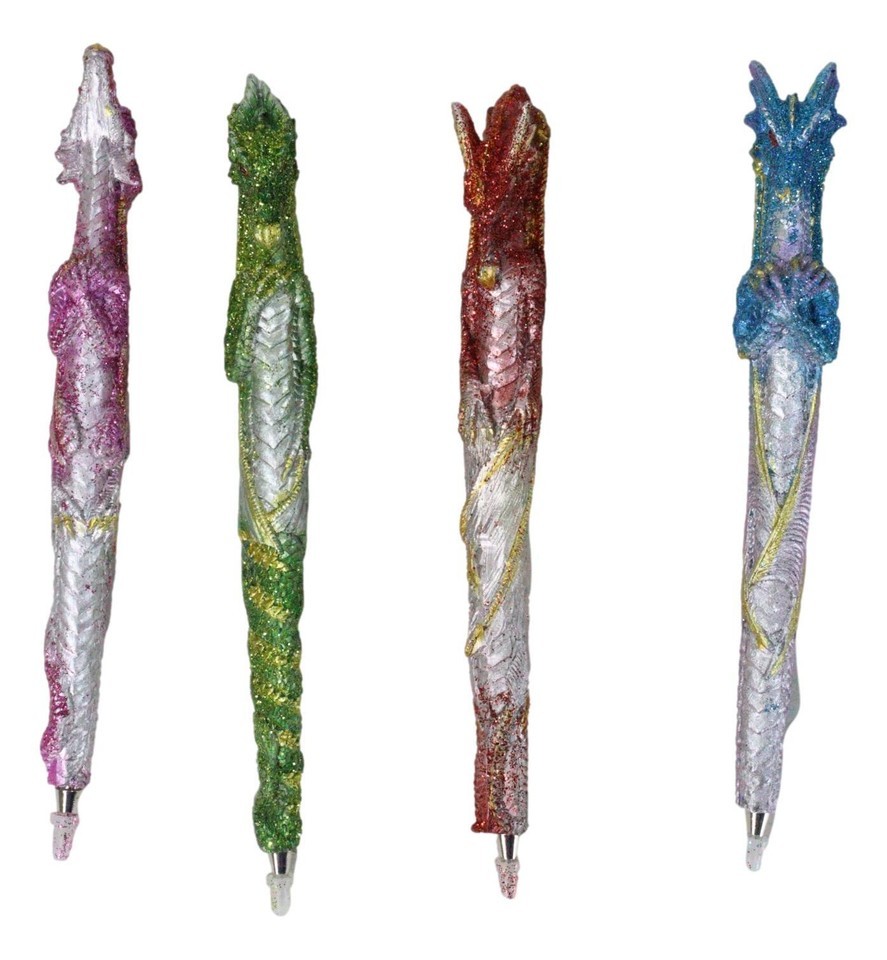 - Set of 16 Colorful Glittering Medieval Fantasy Dragon Figural Ball Point Pens