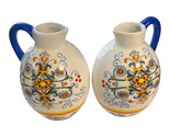 Set of 2 Ceramic Cruets ? LTD Commodities ? Italian-Style Floral Design ? 4.5" Tall ? Blue Handles