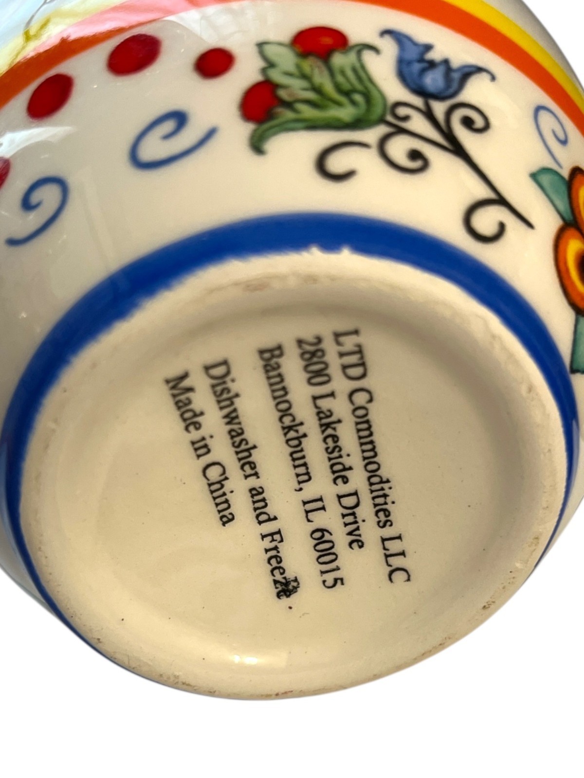Brighten your kitchen with this colorful **set of ceramic oil and vinegar cruets** by LTD Commodities. Featuring a vibrant Italian-style floral design and cobalt blue handles, these petite pitchers are perfect for use or display.