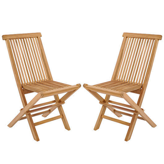 - Set of 2 Indonesia Teak Patio Folding Chairs with High Back and Slatted Seat - C