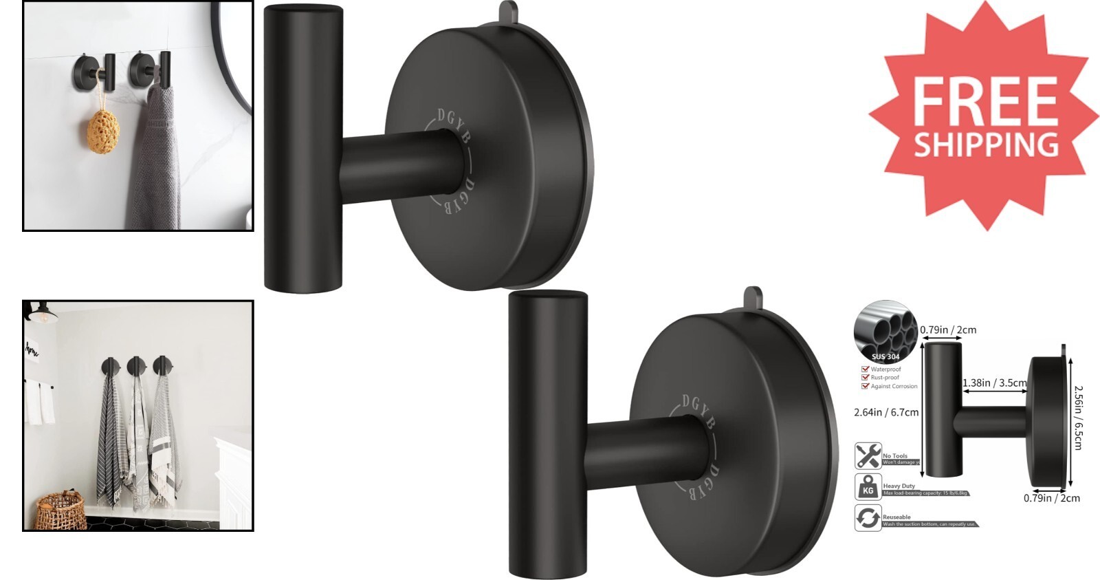 - Set of 2 Matte Black Suction Cup Hooks - Heavy Duty Towel Hooks for Bathroom