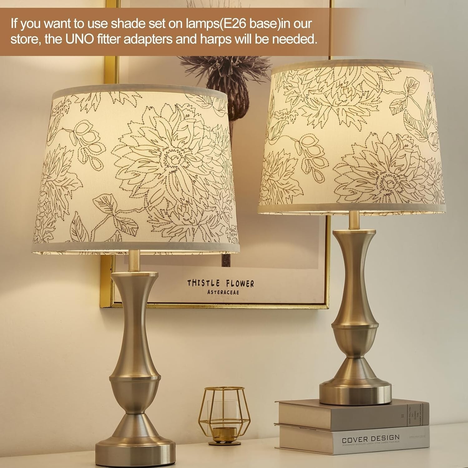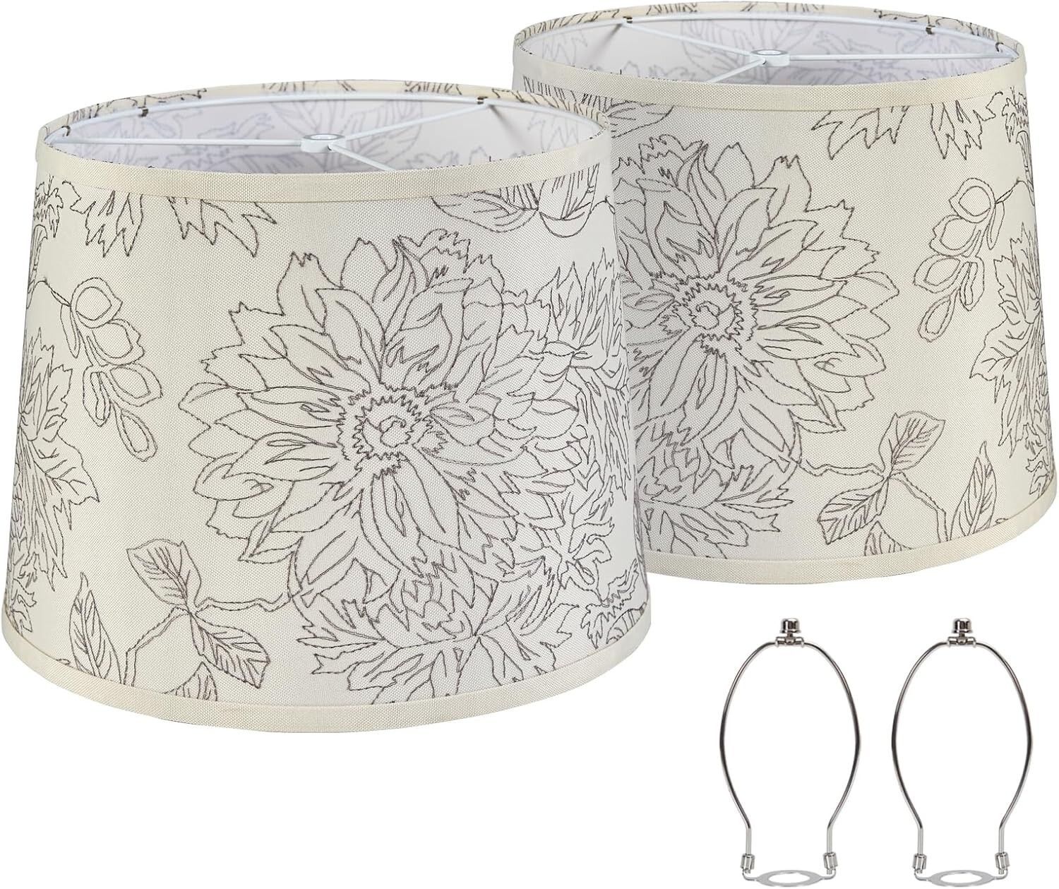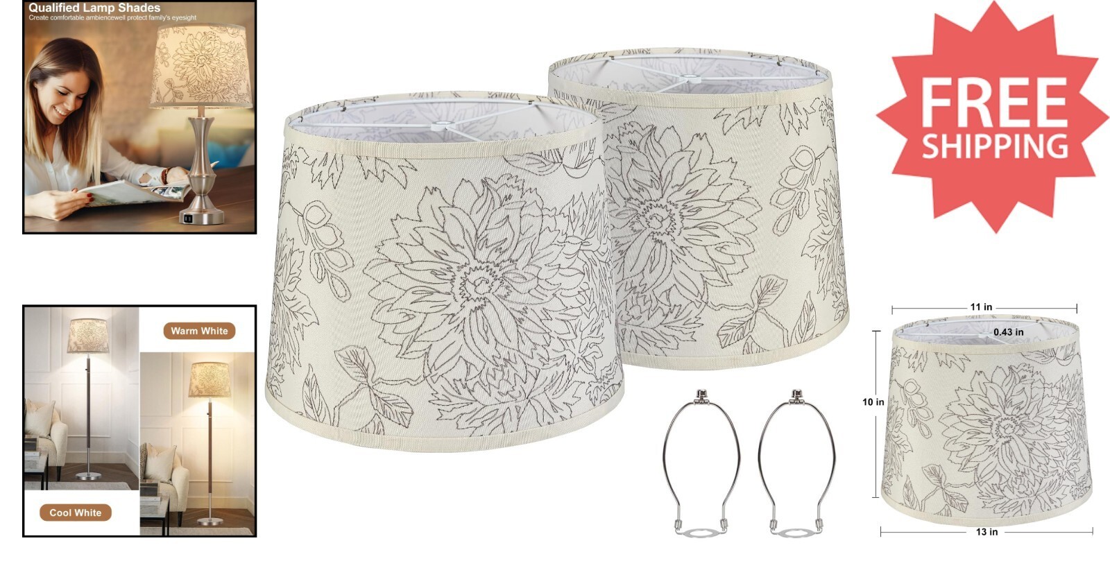 Elevate your lighting decor with this set of two medium drum lamp shades, designed to fit most light fixtures including table lamps, floor lamps, and wall lamps. Crafted from natural linen fabric, these handmade shades add a touch of elegance and warmth to your space. Each shade measures 12.7 inches in diameter at the top and bottom, with a height of 10 inches, making them the perfect size for most standard fixtures. Easy to install with included harp holders, these shades require minimal assembly?just about five minutes. Please verify your light fixture's compatibility, especially the presence of a harp or bulb clamp adapter. Every pair has been rigorously tested for quality and customer satisfaction. Enhance your home lighting effortlessly with these stylish, handcrafted lamp shades.