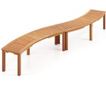 Set of 2 - Outdoor Backless Wooden Garden Bench with Modern Arch Design Selected Acacia Wood: Crafted from premium acacia wood which is high-hardness and crack-resistant, this patio bench withstands daily wear while maintaining its timeless charm, perfect for long-term outdoor use. Appealing Curved Shape: Designed with a unique curved silhouette, this bench not only provides ergonomic seating comfort but also enhances your outdoor space. Several benches can be combined to form different shapes. Oil Painted Surface: Finished with a layer of high-quality oil paint, this bench offers added protection against outdoor use. Such design not only makes the bench surface splinter-free and easy to maintain, but also remain its natural look. Seats up to 2: Comfortably accommodating up to 2, this bench supports up to 800 lbs, making it a reliable option for you and your loved one. Moreover, the firm screw connection and adjustable footpad of middle leg ensure higher stability. Fabulous Patio Addition: This curved bench is perfect for placing around your backyard fire pit or any centerpiece in your garden like a tree or table. Transform your patio, garden, or porch into a picturesque retreat. Its practical design and aesthetic appeal make it a sublime addition to any outdoor places. Overall dimension: 58 x 21.5 x 17 (L x W x H). Mainly made of high-quality acacia wood Oil-painted surface for longer service life Curved shape for more elegance and convenience Firm screw connection for high stability Middle leg with adjustable footpad avoids any wobbling Seats up to 2 with 800 lbs max load Suitable for backyard, poolside, balcony and so on Please avoid rain exposure for prolonged service life Material: Acacia Wood Package Includes: 1/2 x Patio Bench 1 x Instruction