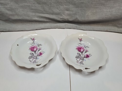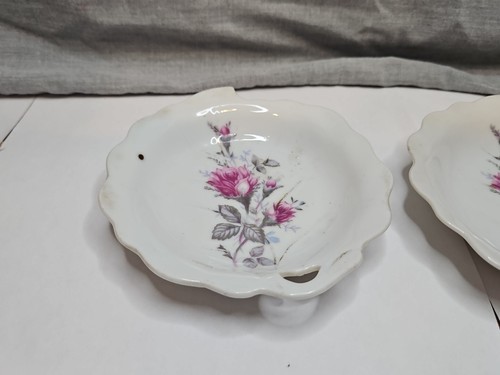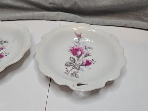 Set of 2 Rose Design Candy Dishes, 4.75'' Wave Pattern, Vintage