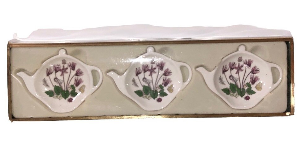 Set of 3 Botanic Garden Portmeirion CYCLAMEN Spoon Rests / Tea Bag Holders