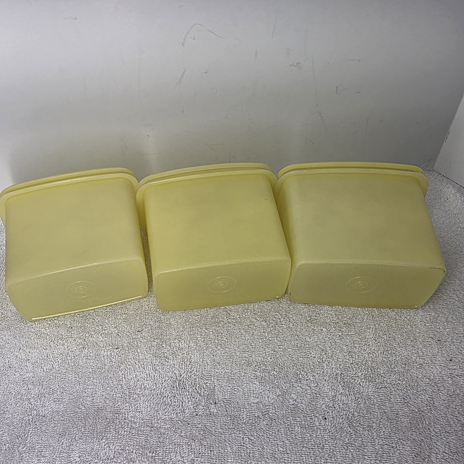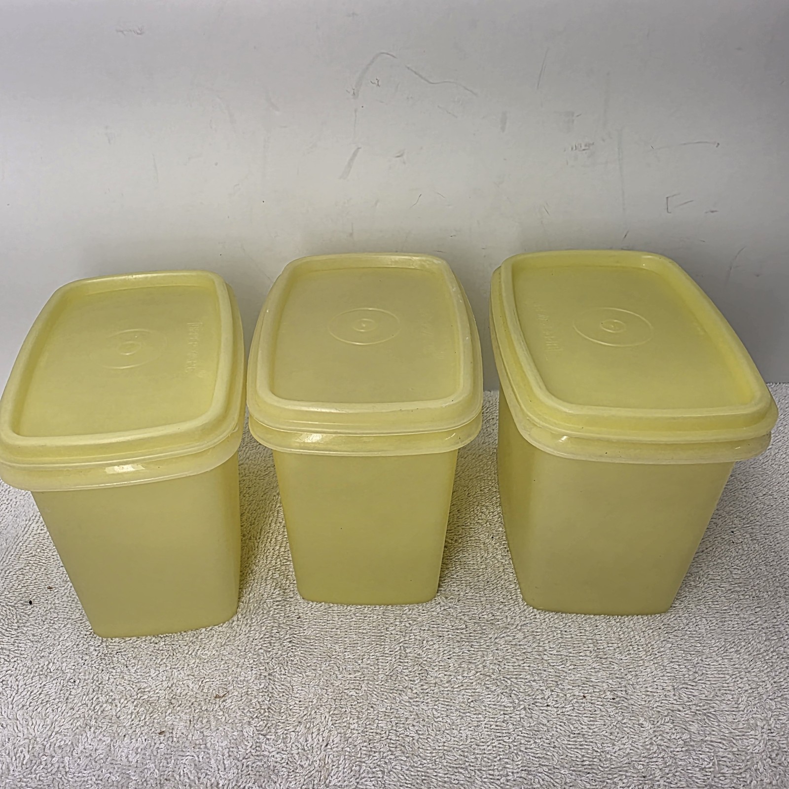 - Set of 3 Vintage Tupperware 1243-11 Yellow Shelf Saver Container & Lids 1244