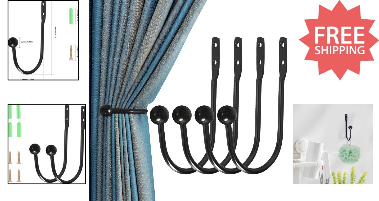 Upgrade your home decor with these stylish and functional metal curtain holdbacks. This set of four, measuring 6 inches in length and 2.8 inches in width, features durable black plating that resists corrosion, deformation, and fading. Easy to install with included screws and anchors, these versatile holdbacks not only keep curtains neatly in place but also double as hooks for coats, hats, towels, and clothing ? perfect for living rooms, dining rooms, and more. Their neutral black finish seamlessly blends with any interior style, adding a charming touch while making it effortless to open and close drapes without wrinkles. Elevate your space quickly and reliably with these heavy-duty, attractive curtain accessories. To ensure fast and reliable delivery, we work with multiple fulfillment partners and suppliers. Depending on availability and location, your order may ship from different warehouses or arrive in packaging that varies from item to item. Tracking details are typically provided shortly after shipment, and customer satisfaction remains our top priority. Please note that due to carrier policies and regional regulations, certain items may not be eligible for delivery to specific states or territories.