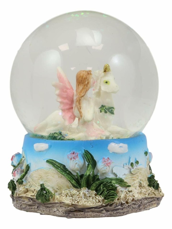 - Set of 4 Fantasy Pixie Fairies And Unicorns Small Glitter Water Globe Figurines